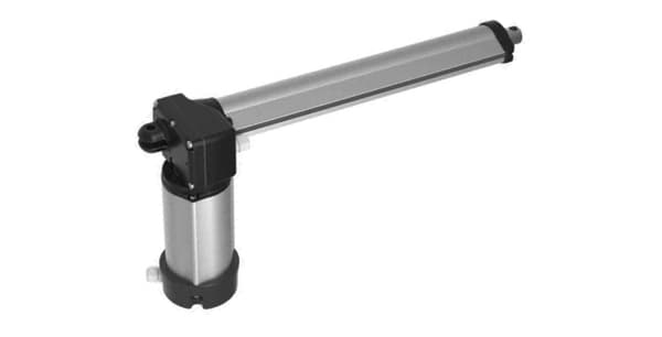 Actuador lineal eléctrico completamente metálico. Engranajes sobre-dimensionados para grandes esfuerzos. Incluye válvula para evitar condensaciones internas. Fuerza máxima de 8.000 N. Motor de corriente alterna 230VAC. Carreras de 50 hasta 300 mm (ampliable). Velocidades de 0,4; 1,3 y 1,8 mm/seg. Micros finales de carrera ajustables. Protección IP65.